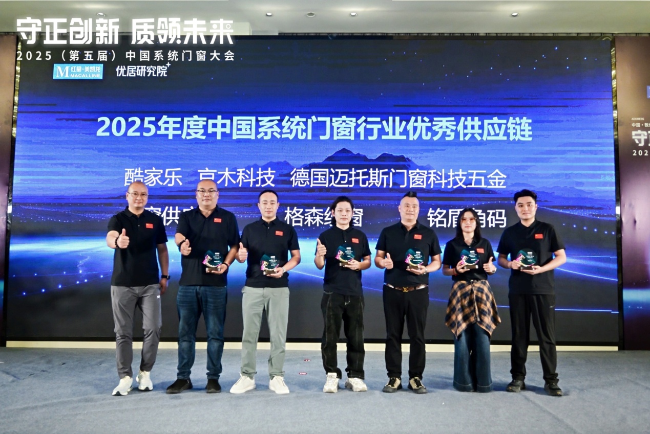 2025年度中国系统门窗行业优秀供应链:酷家乐、京木科技、德国迈托斯门窗科技五金、中窗供应链、格森纱窗、铭盾角码。(排名不分先后)。