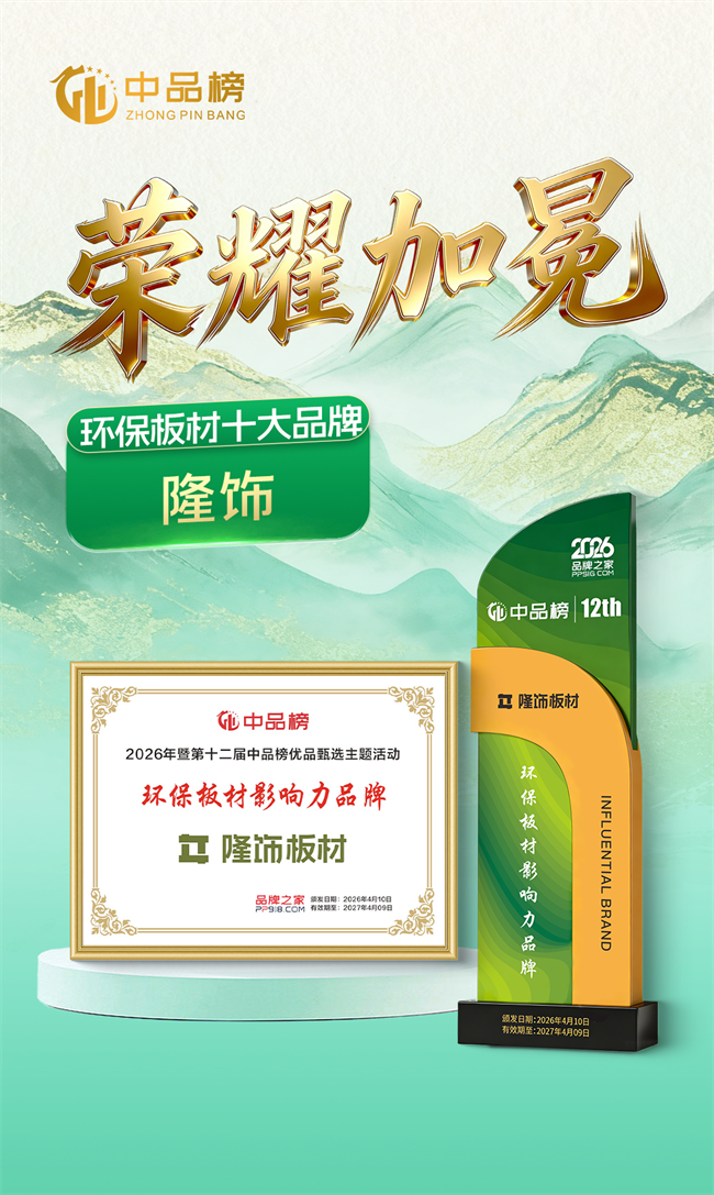 2026年4月1日,第十二届 “中品榜” 优品甄选活动圆满落幕,各品类十大品牌榜单正式揭晓。作为家居建材行业颇具公信力的甄选活动,本届中品榜以公平、公正、公开为原则,从产品品质、市场口碑、服务水平等核心维度综合考评,优中选优筛选出各细分领域标杆品牌。隆饰板材凭借出众的综合实力脱颖而出,一举斩获生态板十大品牌、家具板十大品牌、环保板材十大品牌三项荣誉,成为本届榜单中板材领域的亮眼品牌,其行业影响力与市场认可度再获权威印证。